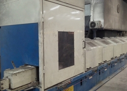 本機采用5.5KW的電機使轉盤圍繞鋼絲360°旋轉,確保鋼絲無遺漏與砂帶接觸,砂帶由5.5KW帶動兩個旋轉的滾筒帶動緊緊壓在線材表面移動,使線材表面被輕微的切削,一般線材表面會被均勻的削除0.03mm,但是砂帶工作時在砂粒之間塞進不斷掉落的氧化皮而使砂帶慢慢失效,通常不會超過24小時,為了提高砂帶的使用壽命,將鋼刷剝殼機放在砂帶機前面,不僅確保鋼絲被100%去除氧化層而且提高砂帶使用時間10倍。